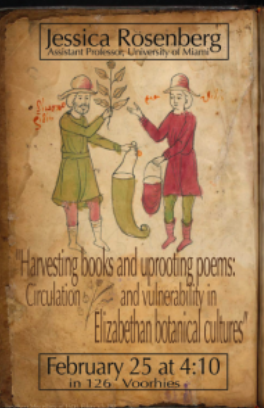 The following month, in February, Dr. Jessica Rosenberg gave a talk at UC Davis entitled ‘Harvesting Books and Uprooting Poems: Circulation and Vulnerability in Elizabethan Botanical Cultures.” Her talk drew from the book she is completing during her year as a fellow at the Huntington Library (2018-19). As the title suggests, her work combines history of the book, history of reading, formalism, and natural history in innovative ways.