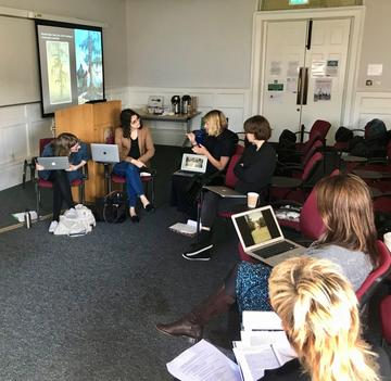 An informal reception concluded the first day and included a reading and performance by Leonie Mhari of To Where it May Concern. The piece—made with Elinor Scarth, who regrettably could not join us—literally unpacks visual and material fragments of a Scottish landscape, collected in Armadale, Skye and Armadale, West Lothian, from a weathered suitcase. The suitcase was used to transport these fragments to Armidale, New South Wales on 13 February 2019, where new fragments were added. In its repeated packing and unpacking in different locations, To Where it May Concern examines how colonization, capitalism and global warming impinge on the remembering and documenting of landscapes.
